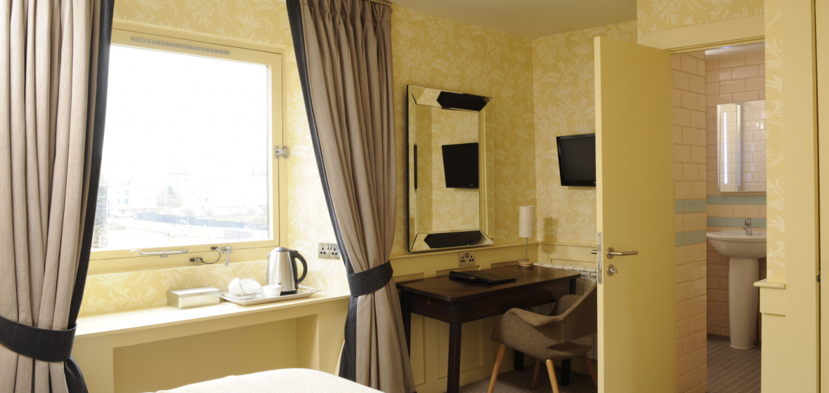 This is a useful middle-of-road B&B/Hotel (46 rooms) to know about in Edinburgh. It is not in the swanky part of town, but it is very handy for Haymarket Station (mainline) and you can in fact walk to Lothian Road or the West End of Prince’s Street in minutes. It has slightly crazy ‘eclectic’ decor – think swirls, leather, tweed, crystal, antlers - which is not entirely easy on the eye, but it has a certain sort of unique charm. Enjoy lolling on one of the over-sized sofas in the warm and spacious sitting room with a glass or two from the honesty bar. The bedrooms are perfectly adequate – comfy beds, nice enough sheets, good lighting, small but modern bathrooms, tea, coffee, telly, free WiFi and iPod dock. The key selling point for Brooks is that it is really not expensive - especially as a hearty breakfast is included. It is quite busy with a fairly young clientele and plenty of smiley staff. You can also arrange dinner in your room.