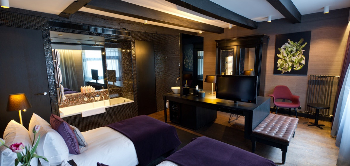 Maintaining the feel of its original 17th century merchants’ home setting, the slick Canal House retains characterful original features such as ornate ceilings and fireplaces, but also, in its newly renovated guise, adds 21st century glamour and comfort. Its new owners are British group Curious Hotels, who also own Cowley Manor in Gloucestershire and L’Hotel in Paris, and they have employed modish design company Concrete to rethink the interiors. They’ve used the chiaroscuro palette of traditional Dutch genre paintings, some examples of which can be found adorning bedroom walls. Divided into five types, from Good to Best, the bedrooms have all the amenities you’d expect, including the sometimes troublesome open-to-view bath and washbasin. But if you’re cool with baring all to your partner, then this is the new cool place to be.