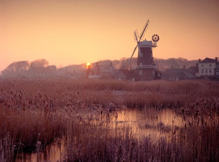 Why do people love staying in your hotel? Because it’s such a unique place to stay – quite unforgettable. People wax lyrical about the comfortable, quirky rooms, all newly refurbished but completely in keeping with the essential essence of this iconic building. It’s relaxing and a joy to sit on one of the comfy, squashy sofas infront of a roaring fire in the circular sitting room, reading the papers and enjoying a glass of wine or a warming hot drink. The views are superb at all times of day and the sunsets are particularly beautiful. People love to just sit and look out over the reeds to the sea in the distance, or to watch the birds (it’s paradise for twitchers). Or maybe walk out from the windmill to the beach at Cley or at Blakeney, or even further afield. You don’t need your car at all if you want to do everything on foot. The staff are very friendly and nothing is too much trouble. All in all, it’s just a really special place to stay which is why people keep coming back, again and again.