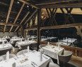Schöne raue Holzbalken im Restaurant und tolles Essen