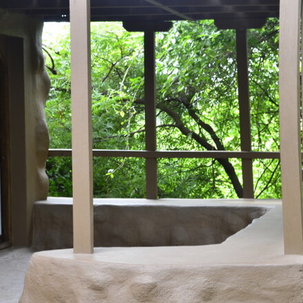Der aus den Felsen gehauene Naturpool ist ein guter Ort, um Affen und Vögel zu beobachten.Garten