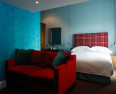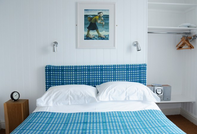 In this delightful, multi-coloured Regency town, the former Harbourmaster's waterfront house continues the theme: azure blue outside, multi-coloured inside. Downstairs: eating and drinking at the curving bar or in the informal dining room with inventive menus. Upstairs: seven bright, modern bedrooms. From the topmost, the master could keep an eye on all three harbours under his control.