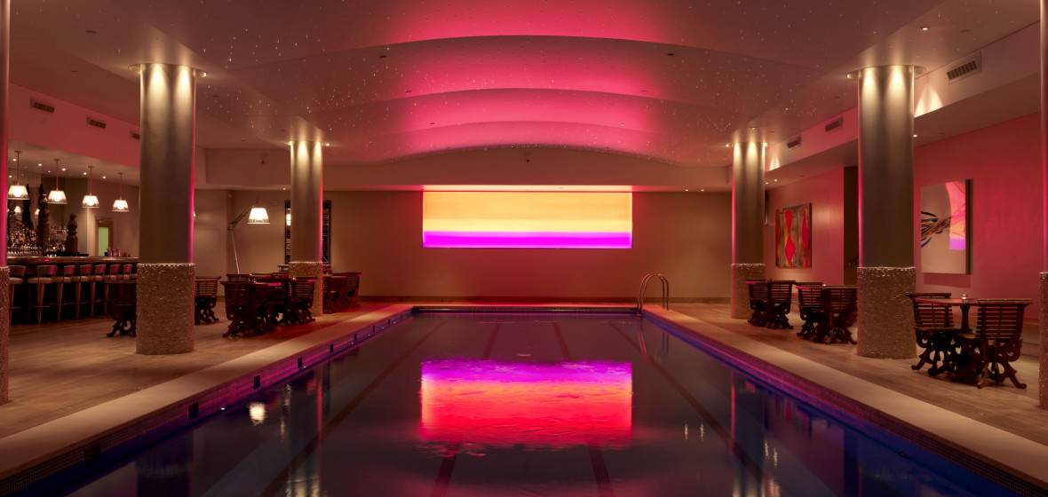 Gäste, die mit Firmdale Hotels vertraut sind, werden den farbenfrohen, ikonischen Stil von Kit Kemp erkennen, wenn sie das Haymarket Hotel betreten. Zeitgenössische Kunst schmückt die Wände neben handverlesenen Keramikstücken, gemusterten Stoffen und kräftigen Farben. Das Haymarket Hotel liegt mitten im Londoner West End - auch wenn man das dank der ausgezeichneten Schallisolierung von außen leicht vergessen kann - und ist ein idealer Ausgangspunkt für Theaterbesuche und hat die National Gallery, den Trafalgar Square und die Mall direkt vor der Tür. Das Restaurant und die Bar Brumus sind lebhaft und auch bei Nicht-Bewohnern beliebt. Gäste können sich in die Bibliothek oder auf die Terrasse zurückziehen, die nur für Bewohner zugänglich sind und beide über eine Bar verfügen (ein Merkmal aller Firmdale-Häuser). Ein schickes, unterirdisches 18-Meter-Schwimmbecken mit glitzernder Poolbar hebt dieses Hotel von anderen ab, und Kinder werden die aufblasbaren Spielgeräte lieben. Außerdem gibt es einen hochmodernen Fitnessraum und Behandlungsräume.