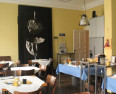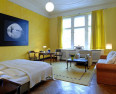 Quirky uber-modern design touches (vast monochrome photographs of gourds, Mondrian-look rugs, etc.) in an 1898 apartment make this very Berlin Now. Rather communal (e.g. an honesty bar in the salon where the household congregates), rather green (only showers), rather nice. Friendly, intelligent owners....there are good books around...a safe and convenient part of Charlottenburg; and relatively low prices make this a very attractive package.