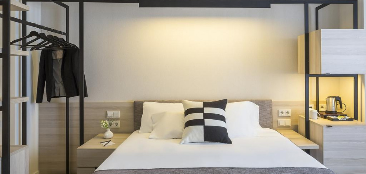 Dans une rue piétonne tranquille, à proximité de la Placa Catalunya et de Las Ramblas, l'hôtel minimaliste 3 étoiles Denit offre un refuge paisible. Les chambres sont propres, lumineuses et fonctionnelles : lit, bureau, chaise, armoire et bonne salle de bains. Que voulez-vous de plus ? Le petit-déjeuner ? Il est également proposé au sous-sol, lumineux et fonctionnel. Servez-vous et installez-vous à des tables pour deux personnes ou à des tables plus grandes pour tous les convives. Il y a également un bar à la réception si vous avez soif, mais vous pouvez aussi fréquenter les bars et les restaurants locaux qui se trouvent sur le pas de la porte. Emplacement central sans fioritures, ce qui se reflète dans le prix.