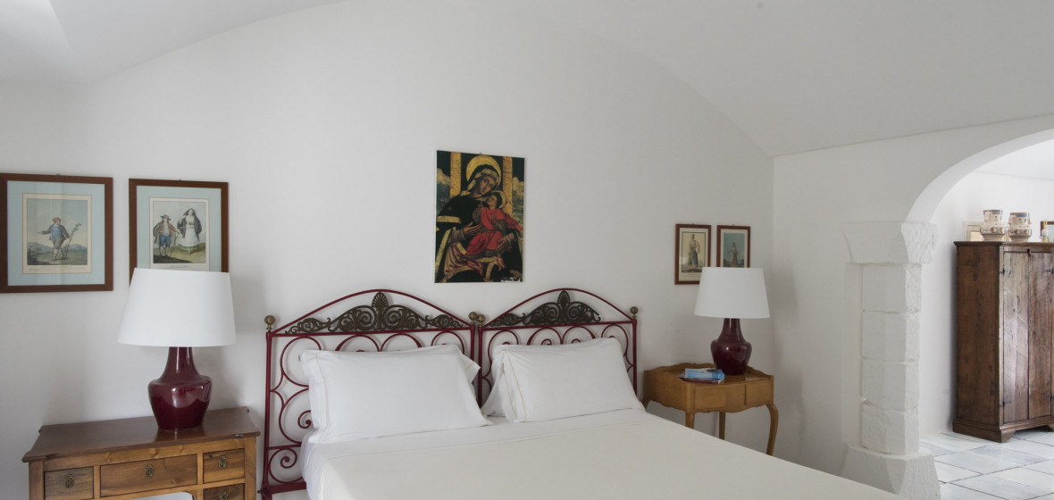 This was the first masseria in Puglia to be converted into a luxury hotel. 20-odd years on, antique dealer Camillo Guerra and his family are still running it with charm and dedication. The solid, 17th century ex-farmhouse and its sprawling, Moorish outbuildings house 37 bedrooms and suites, sitting rooms and an excellent restaurant (all filled with period furnishings and paintings) while outside there are flower-filled courtyards and terraces, a big pool, and tennis courts. A sophisticated new spa and private beach club "Le Tamerici" adds to the attractions.