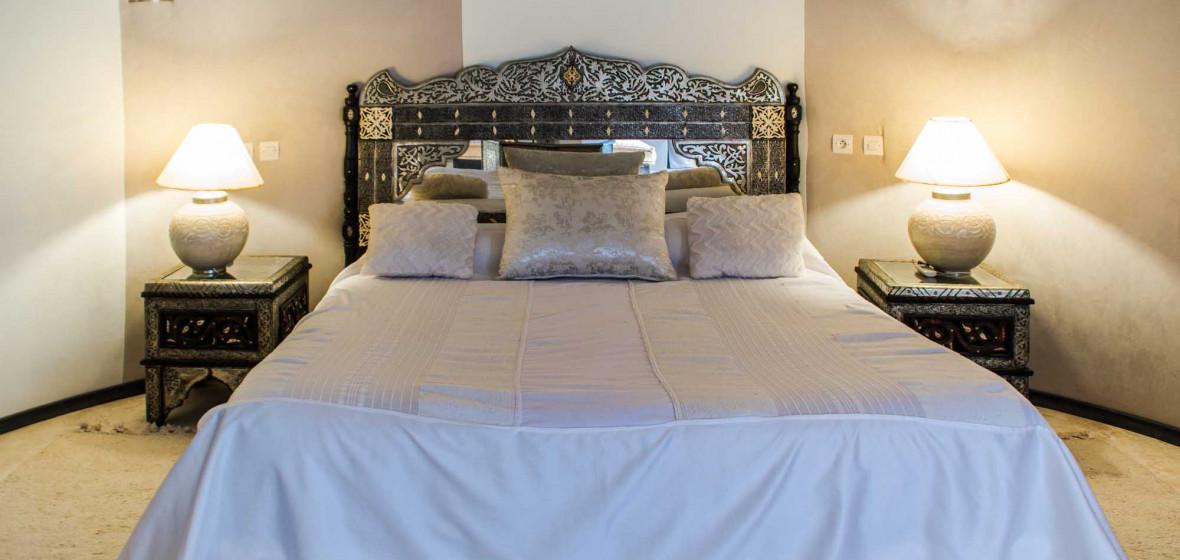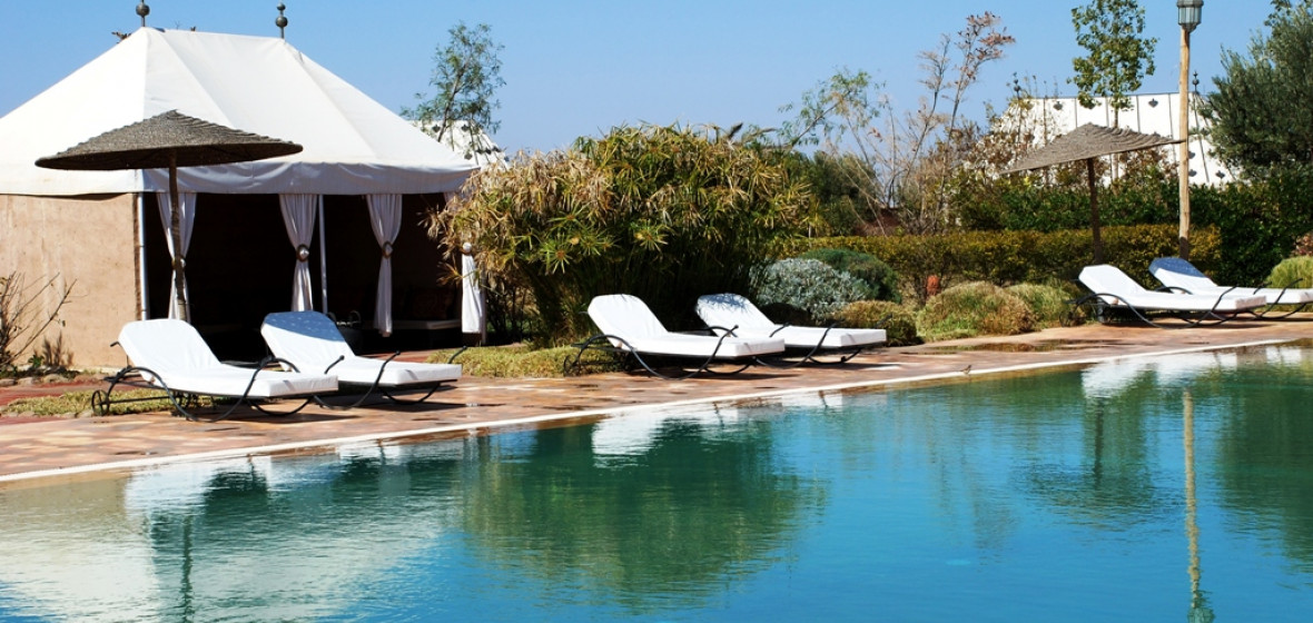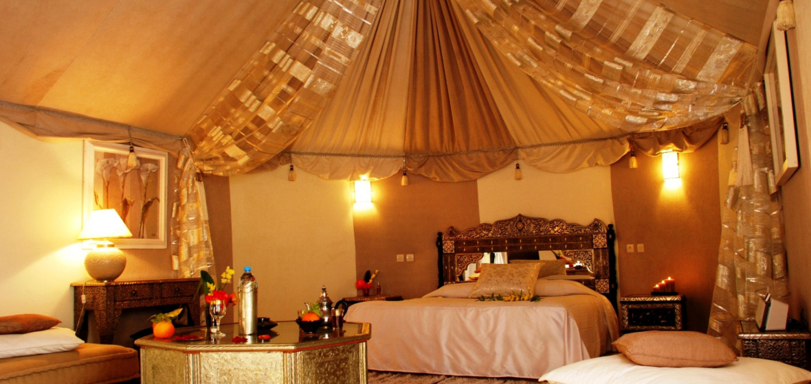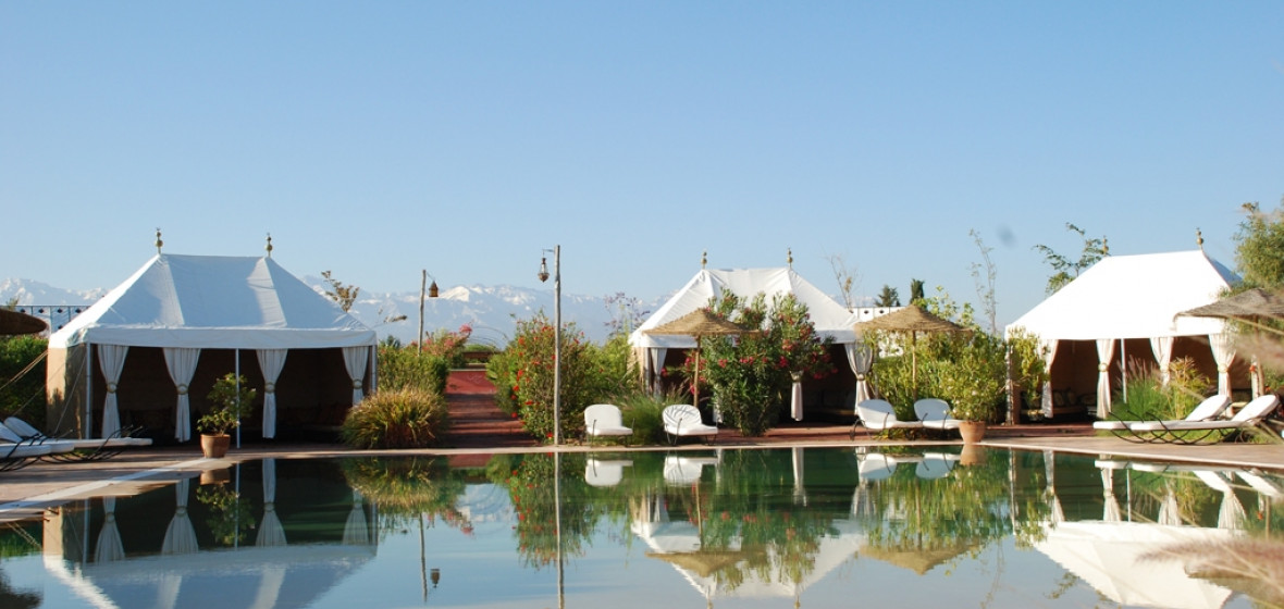 Pourquoi les gens aiment-ils séjourner dans votre hôtel ? Nos clients aiment la tranquillité, le jardin, la vue sur les montagnes de l'Atlas, l'air pur et tout simplement le farniente autour de la piscine. Que peut-on faire dans la région ou sur place ? Vous pouvez explorer la région en faisant des excursions vers : La vallée de l'Ourika, le lac Lalla Takerkoust, le désert d'Agafay et la vallée de Zat. Vous pouvez également visiter les souks, faire du trekking dans les montagnes ou jouer au golf. Sur place, de nombreuses activités sont proposées, notamment un hammam, des massages, une grande piscine à débordement, un solarium, un mini-golf, du bowling, des balades en quad, ainsi que des promenades à dos de chameau et de cheval. Quel type de petit-déjeuner proposez-vous ? Café, thé, lait, chocolat, jus d'orange fraîchement pressé, confiture, miel, pain grillé, Mesemen (crêpes marocaines traditionnelles), crêpes, yaourt, œufs, fruits. Proposez-vous d'autres repas ? Nous proposons également des déjeuners et des dîners et nous sommes spécialisés dans la cuisine marocaine traditionnelle. Pouvez-vous nous recommander de bons restaurants locaux ? Nous pouvons certainement vous recommander de bons restaurants locaux. Quels sont vos types de chambres les plus populaires, et pourquoi ? Nos chambres les plus populaires sont les tentes Caidal, qui sont très confortables et appréciées pour leur originalité. Quel message aimeriez-vous transmettre aux lecteurs d'Hotel Guru ? Profitez de notre hébergement unique et de notre hospitalité chaleureuse aux portes de Marrakech.
