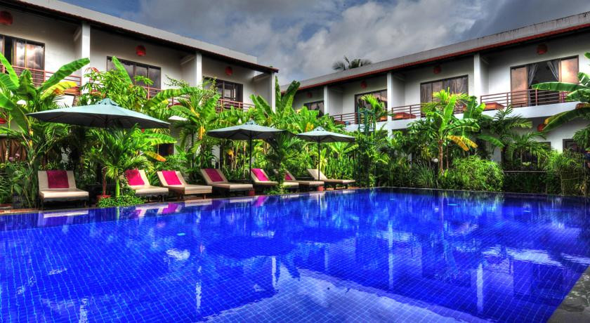 The unprepossessing exterior of this small family-owned hotel may not be inviting, but reserve judgment. You will change your mind as the young staff escort you to your room along paths shaded by palm and banana trees, and flower boxes dripping with orchids.
