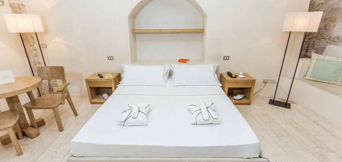 Cet hôtel et spa à la fraîcheur absolue est installé dans un palazzo du XVIe siècle magnifiquement restauré, au sommet de la fascinante "ville blanche" d'Ostuni. Les intérieurs présentent des plafonds voûtés, des murs en pierre nue, des sols en pierre calcaire et une décoration minimaliste en blanc et écru dans les espaces publics et les neuf chambres. Pour les moments de détente, il y a un spa, une petite piscine et un restaurant qui sert des versions modernes de la cuisine locale. Les vues depuis les différentes terrasses et les remparts (bien pourvus en chaises longues à coussin blanc) sont époustouflantes.