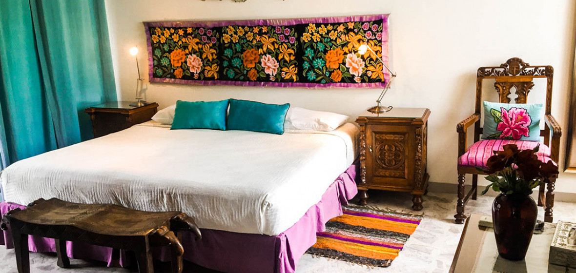 Charmantes, familiengeführtes Hotel im Zentrum des traditionellen Oaxaca mit nur zehn Zimmern, die alle in einem sparsamen, durchdachten Stil eingerichtet und mit eklektischen Gegenständen und lebendigen Stücken des lokalen Kunsthandwerks ausgestattet sind. Einige Zimmer haben ein traditionell gefliestes Bad, andere haben Zugang zu einem Balkon oder Innenhof. Das Restaurant La Olla serviert klassische mexikanische Gerichte aus lokalen Bio-Zutaten in einem rustikalen Ambiente.