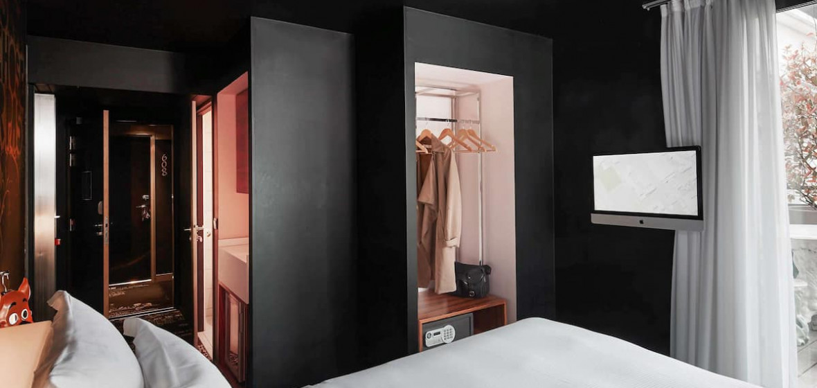 "Bedrooms are streetwise exercises in concrete, with iMacs and fairground masks covering bedside lights. It's the ground floor that's the real hit: with a shared table for pizza and the graffiti-ceilinged restaurant and Island bar."