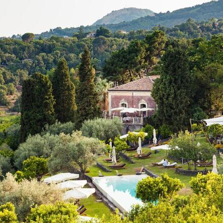 Clichés apart, Monaci delle Terre Nere is an absolute hidden gem. Accessibly off the beaten track, this 19-room boutique hotel is interestingly contemporary in terms of decor - bare gessoed and concreted walls, clever modern art, books you actually want to read or indeed should have read, with a bit of volcanic lava, Rococo, Philippe Starck and gilt thrown in. Importantly it is comfy and not in the least pretentious. A pretty dusty pink 19th century villa is the hub of the hotel whilst the bedrooms are scattered through the 40 acre grounds in a mixture of converted farm buildings, outhouses and some new builds. But don’t let this put you off, walking to and from the hotel is a delight – especially at night with sophisticated fairy lights to show you the way. The bedrooms and bathrooms are spacious, light and bright - all clean lines and modern simplicity. Lie by the pool and marvel at Mount Etna rising up behind the hotel, or admire the cultivated plains fanning out to the Mediterranean coast far below. The food is innovative and fresh, perhaps a tad expensive, the wines local and delicious. Guido, Ada and their excellent young team will make you feel entirely at home. This is the perfect base for exploring the fascinating north eastern shores and hinterland of Sicily by car, with easy access to historic points of interest such as Taormina and Syracuse and it's handy for Catania airport.