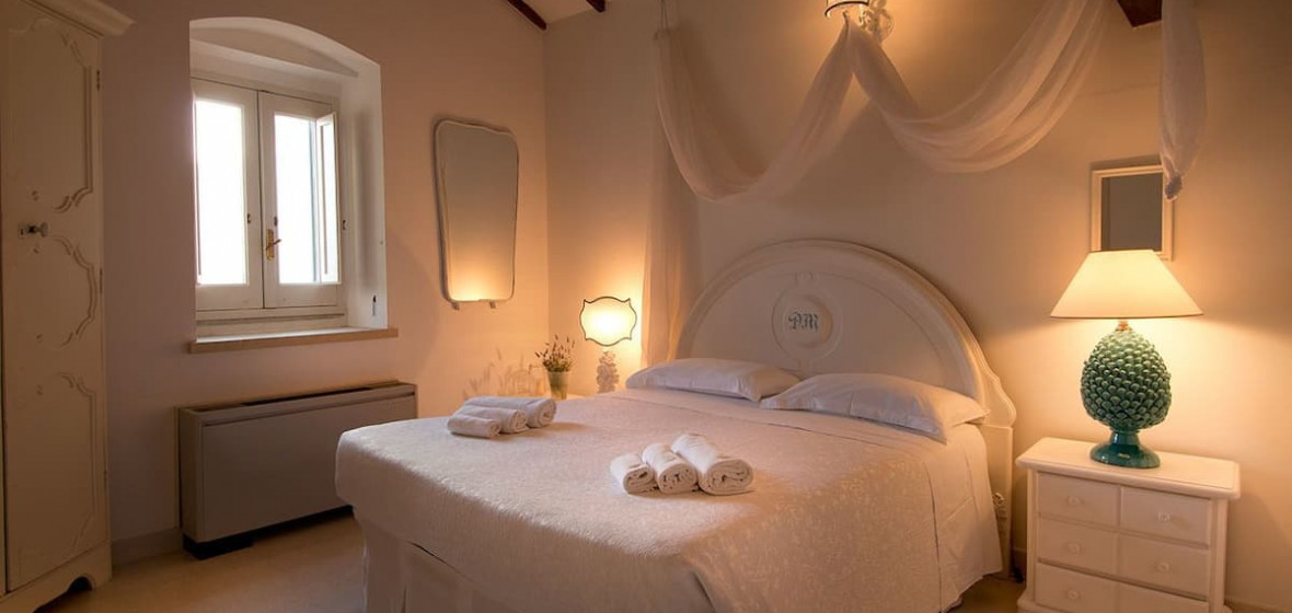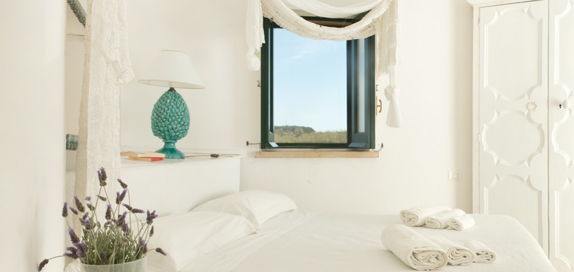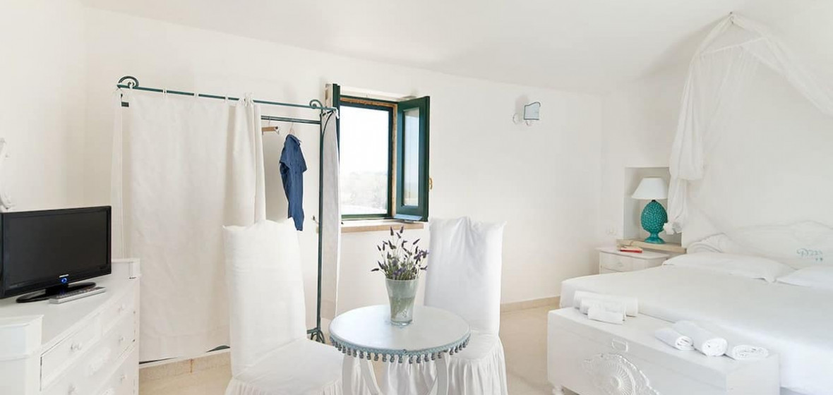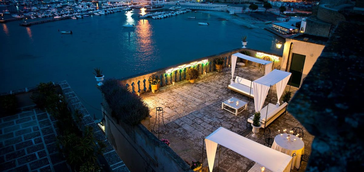 Le Palazzo de Mori, un beau palais du XVe siècle, se trouve juste au-dessus des remparts de la charmante vieille ville portuaire d'Otrante. L'immense terrasse, agrémentée de canapés en fer forgé et de grands parasols blancs, surplombe la mer et constitue un endroit enchanteur pour profiter des chaudes soirées d'été. La décoration est simple et élégante, blanc sur blanc, avec quelques touches de couleur. Les meilleures des dix chambres sont celles ensoleillées du dernier étage.