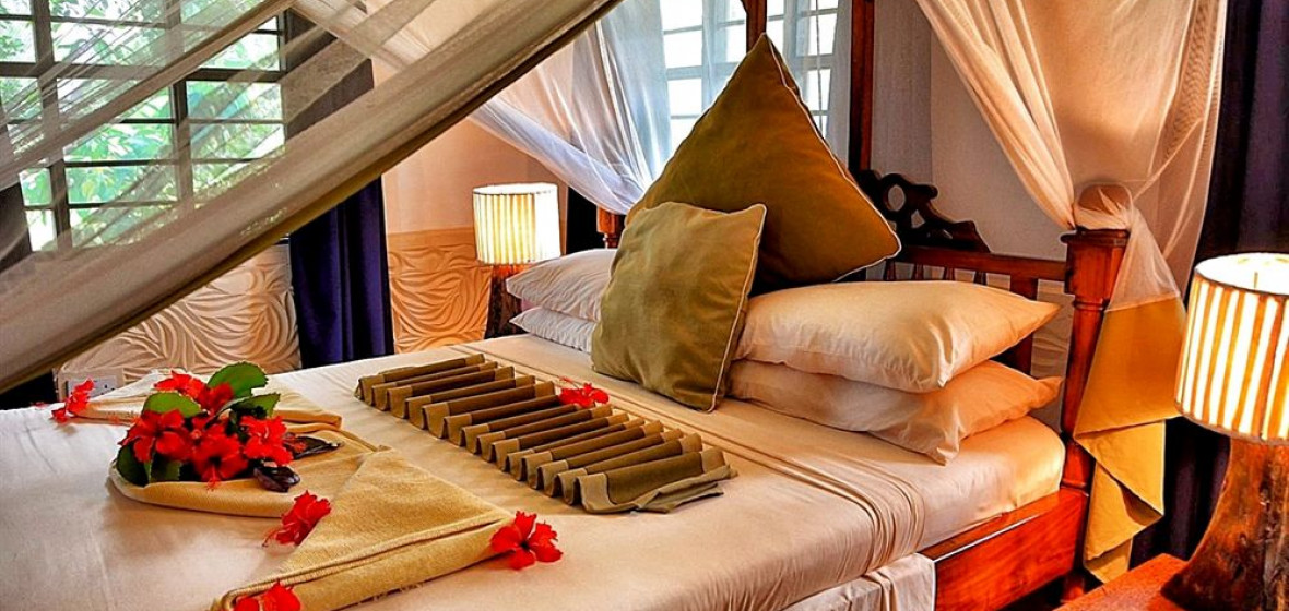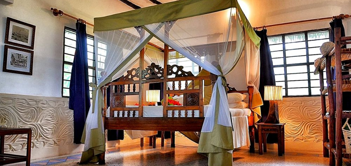 On an idyllic stretch of coastline, this self-confessed 3-star hotel is stunning and offers great value for money. Consisting of sixteen cottages for two, all with views of beach and sea, Pongwe Beach Hotel is tucked away in a beautiful little cove, sheltered on both sides by a small coral outcrop. As the hotel also owns the surrounding land, it means that the beach is usually deserted. A real piece of paradise.
