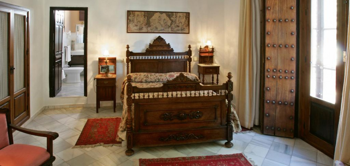 An enchanting pension in a rambling Andalucian townhouse, built around a tiled courtyard. The public rooms are full of interesting objects that the owners have collected over time, including an old grinding wheel and a number of film posters. Bedrooms are large, comfortable and charmingly quirky. Outside, tables are set under the wisteria and there’s a big sun terrace. The Barbadillo sherry bodegas are nearby, so if you get lost, follow your nose.