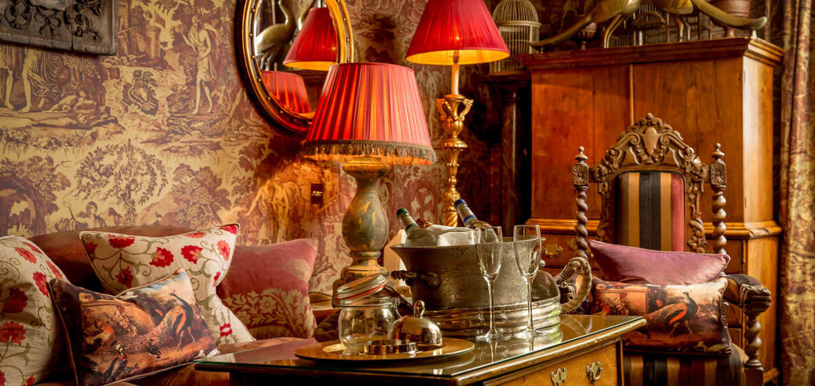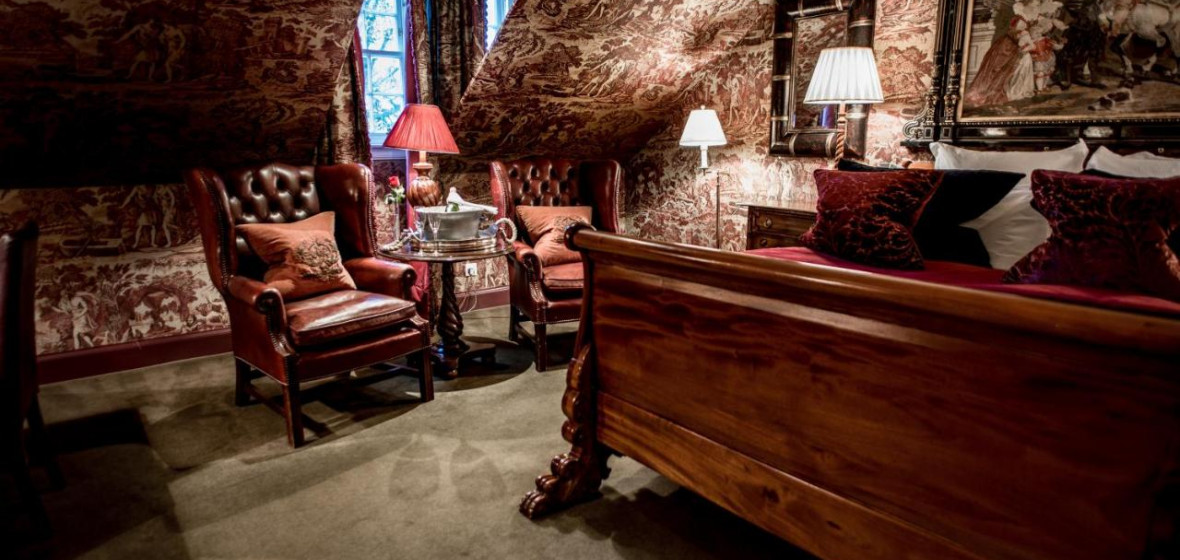 • This hotel oozes glammour, romance and seduction, with its wildly opulent canopied beds, rich fabrics and roaring fires.