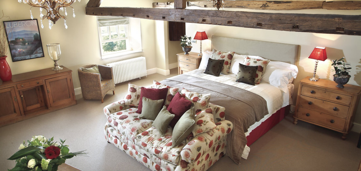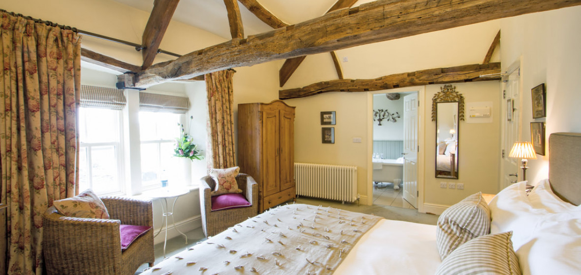 Bedrooms, some with open beams, genuinely differ in shape and size but share a contemporary country look of soft colours, generous curtains, stripped wood or Provencal-style furniture – with the odd vintage piece – and a refreshing lack of clutter. Bathrooms are big and inviting, all with roll-top baths. Take a walk across the fields to Whitbarrow Scar both for the views and to work up an appetite for dinner.