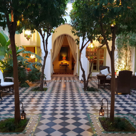 • Five stunning 14th-century Riads, with enchanting interiors, cool leafy courtyard and tented roofterrace, right in the Medina.