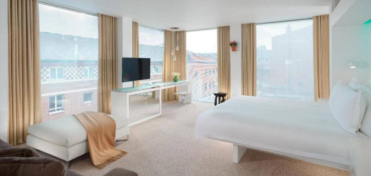 It looks like a swanky office block. Look again, and you notice the over-sized planters, the red telephone boxes and the towering glass revolving door – although there's no obvious signage. Step inside the vast entrance lobby and the sense of playfulness continues. The traditional VIP red carpet has been replaced with a bold black number with sexy red borders; giant chess pieces sit on one side while gold-coloured 'molar teeth' stools sit behind. There are huge mirrors, fat white pillars and vast windows, some tinted yellow to make London streets seem less grey. All are hallmarks of maverick designer Philippe Starck who oversaw the conversion of a former office building to the hotel in 1999. It's full of the irreverent and quirky - a hidden bar with a speakeasy vibe, a lounge that riffs on a formal British drawing room - that make guests feel they're at a party. Despite the quirkiness, service levels are faultless with staff popping up at your elbow just when needed. Bedrooms are sleek white-on -white affairs that could be clinical were it not for the funky mood lighting, floor-to-ceiling windows and clever touches such as a colourful pot-plant. The overall feel is both restful and luxurious. There's a vibrant – and well-priced for central London - Pan-Asian menu in the restaurant and one of the best breakfast experiences this writer has enjoyed, from fresh mango and Greek yoghurt to tortillas, frittatas and the full grill. Leave time for a cocktail in the speakeasy style Blind Spot. Deliciously decadent.