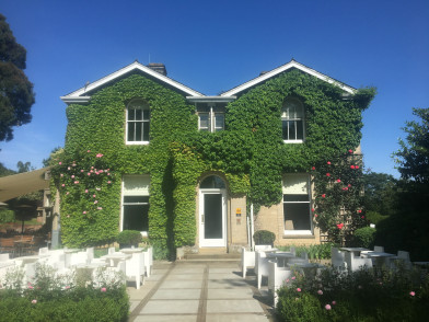 "With its white walls and jumble of tiled roofs, its sun trap of a terrace and neat green picket fence, and its mix of sofas and banquettes, its flagstone floor and kitchen open to view on the inside, it presents the ideal country hostelry for modern urban man."