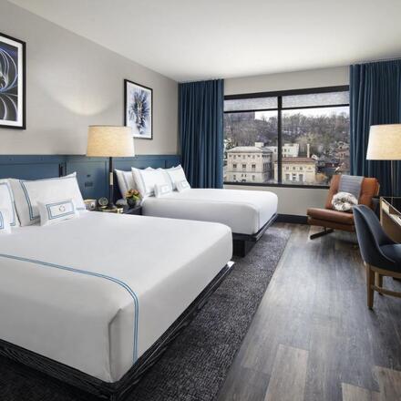 “A historic hotel located in Pittsburg's atmospheric Deutschtown district. Rooms are charming with antique furniture, fireplaces, and sash windows. A small but atmospheric bar serves a good selection of microbrews plus there's a gym and large central courtyard. A characterful stay for city exploring.”