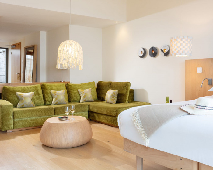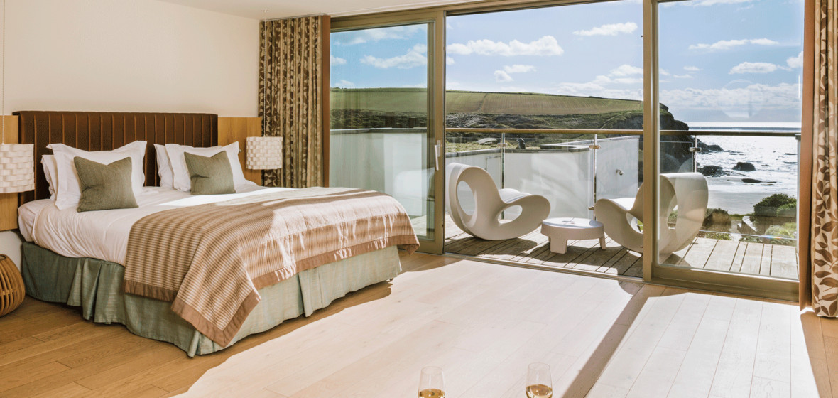 Das Scarlet ("ein grünes Hotel mit Blick auf den blauen Atlantik"), das sich unterhalb der Bedruthan Steps befindet und denselben drei Schwestern gehört, ist ein fabelhafter Neuzugang in der kornischen Hotelszene: engagiert umweltfreundlich und dennoch sybaritisch, mit demselben atemberaubenden Blick auf den Strand von Mawgan Porth. Das hervorragend gestaltete Gebäude spiegelt die Umgebung wider, mit Infinity-Pools, die sich bis zum Meer zu erstrecken scheinen, und Flachdächern, die mit Strandgut und Felsen bedeckt sind und so den Klippen ähneln. Es gibt ein ayurvedisches Spa und eine ausgezeichnete Küche von Chefkoch Tom Hunter. Wahrhaftig entspannend.