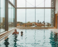 Ein Öko-Spa mit einem bromgefilterten Innenpool, einem natürlichen Schilfbecken im Freien, einer Holzsauna und Pod-BehandlungsräumenRestaurant