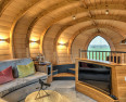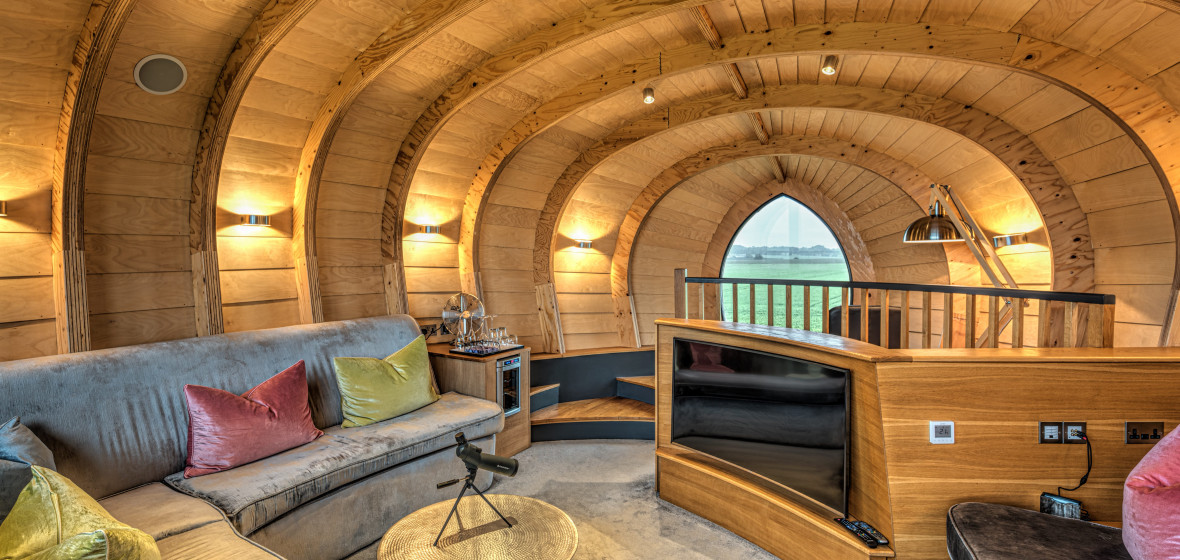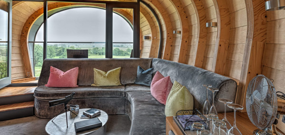 The Windmill in Suffolk is a striking self-catering hideaway run with great care by Natalie and Steve. Ten years after opening, it still feels immaculate, with thoughtful touches like Green & Black’s chocolate by the bed, Elemis sleep spray and wonderfully comfortable robes and slippers. Sleeping four, the windmill has a well-equipped kitchen with dishwasher and washing machine, plus SKY TV and a hidden music system. The bathroom gleams with mother of pearl tiles, a free-standing bath and walk-in shower, while the glass pod at the top offers sunrise on one side and sunset on the other. Just five minutes from Lavenham and fifteen from Bury St Edmunds, it’s a unique base for exploring Suffolk – though once inside, you may not want to leave.