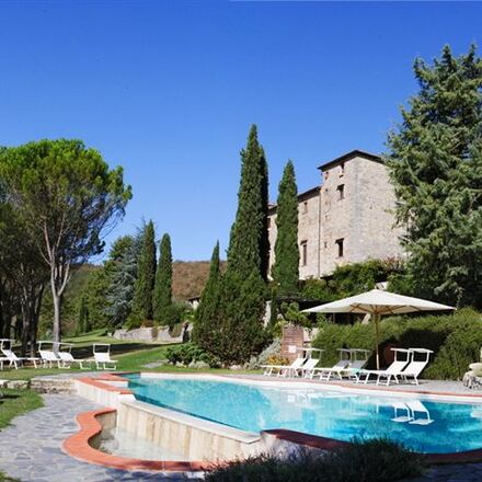 “Stunning views, gourmet food, fabulous rooms and suites. A romantic and gastronomic Tuscan country escape in the hills of Chianti. Muted interiors exude understated luxury. Fantastic swimming pool and sunny terraces. A sophisticated Tuscan holiday.”
