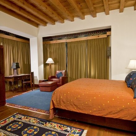 Located in a bucolic valley, the town of Paro is one of Bhutan's most visited destinations. Easier to access than other areas due to its international airport, Paro offers visitors beautiful Bhutanese landscapes, ancient monasteries and plentiful opportunities to become acquainted with the local culture. Zhiwa Ling Heritage Hotel offers a carefully pitched blend of luxury amenities and regional tradition in its boutique guesthouse. Boasting a temple, yoga retreats, a meditation centre and spa, this hotel offers guests a variety of ways in which to get to know Paro and its rich tapestry of religion, art and architecture. Guestrooms are split across a number of traditional cottages with views over the Paro Valley. Amenities are first-class, with enormous, Californian beds and Swedish underfloor heating in the junior suites. Regional textiles add a hint of local flavour, while a cosy sitting room provides privacy and comfort for couples or groups. There are good options for a family stay here, too, with the Royal Raven Suite equipped with a large sitting and dining area. Alongside the hotel's Buddhist temple there is a meditation house where guests can sign up for meditation classes led by monks. Yoga retreats are also held here, making this a true mindfulness sanctuary. The hotel spa complements the yoga therapy with massage treatments, available for individuals, couples and groups. Don't miss the cosy tea house where you can enjoy traditional Bhutan butter tea and unwind with a book. A tranquil heritage retreat.