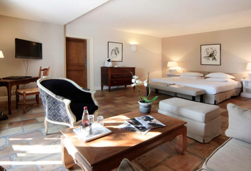 A chic hotel in the Provencal countryside. Large, elegant rooms are filled with antiques, white washed walls, and rustic furnishings. Outdoor pool, terrace, and a shady garden. Michelin starred cuisine, intimate bar. Grown-up, peaceful, gourmet.