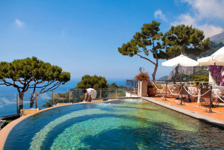 • Positioned within the Punta Campanella reserve, and with incredible views across to the island of Capri, the Relais Blu Belvedere must have one of the best spots on the planet if you like picturesque ocean views. The details of this contemporary villa do nothing to detract from that, with glass walls, and plenty of white letting in all the light and making the most of the blue views. The pool and roof terrace are impeccable, the 11 rooms and suites are large, and the restaurant is Michelin starred. Expect privacy, relaxation, and beauty.