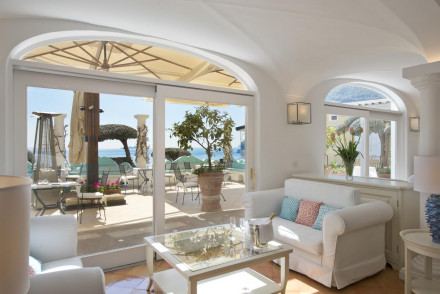 • Perched 210 steps above the beach, Miramare is one of Positano’s originals—now home to 16 elegant, sea-facing suites with breathtaking terraces. Two-bedroom apartments and sofa beds make it family-friendly, while the views alone are worth the climb.