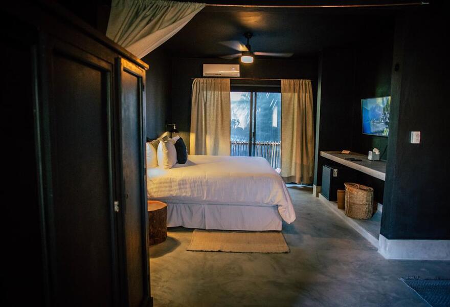 Hidden and romantic jungle chic boutique hotel beside a tranquil lagoon and an ancient ruined city. Rooms are wonderfully atmospheric with a mix of antiques, local artefacts, and unpolished cement. The best are accessed by a rope bridge and have outdoor bathrooms. Discrete and attentive service.