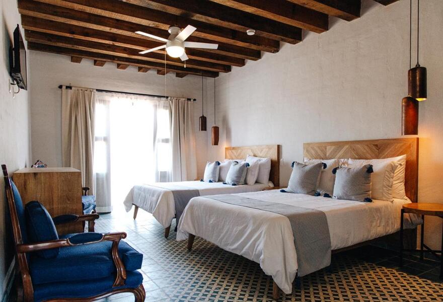 A historic hotel blending colonial charm with modern comforts, in the heart of Guanajuato. Think stone walls, turquoise accents, and chic wood detailing. Unwind in the courtyard, spa, or pool, and dine in style at the elegant restaurant. A perfect base to explore this magical, mural-worthy city.