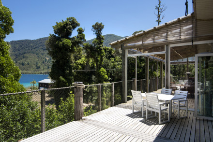 Accessible only by water taxi, helicopter or on foot, this exclusive-use lodge is the first night's stay along the Queen Charlotte Track. 5 light, airy rooms with private outdoor decks, showers and baths. With an outdoor hot tub, native forest garden, restaurant and wifi. Luxury in the wilderness.