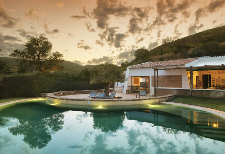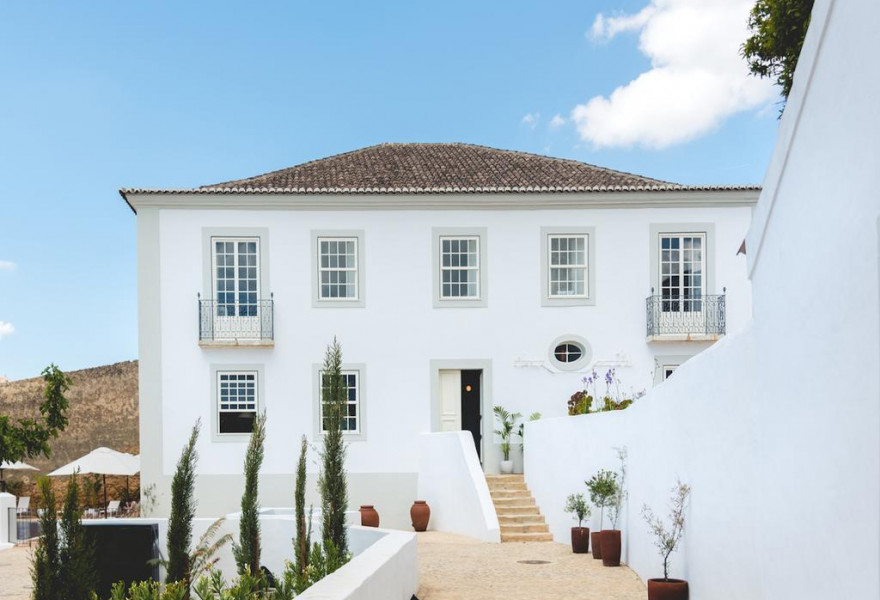 Lavish accommodation surrounded by orange groves and olive trees. Contemporary white building with lots of natural light, huge terraces, and beautiful views over the grounds. Portugese specialities in the restaurant and lovely swimming pool. A real hideout in supreme comfort.