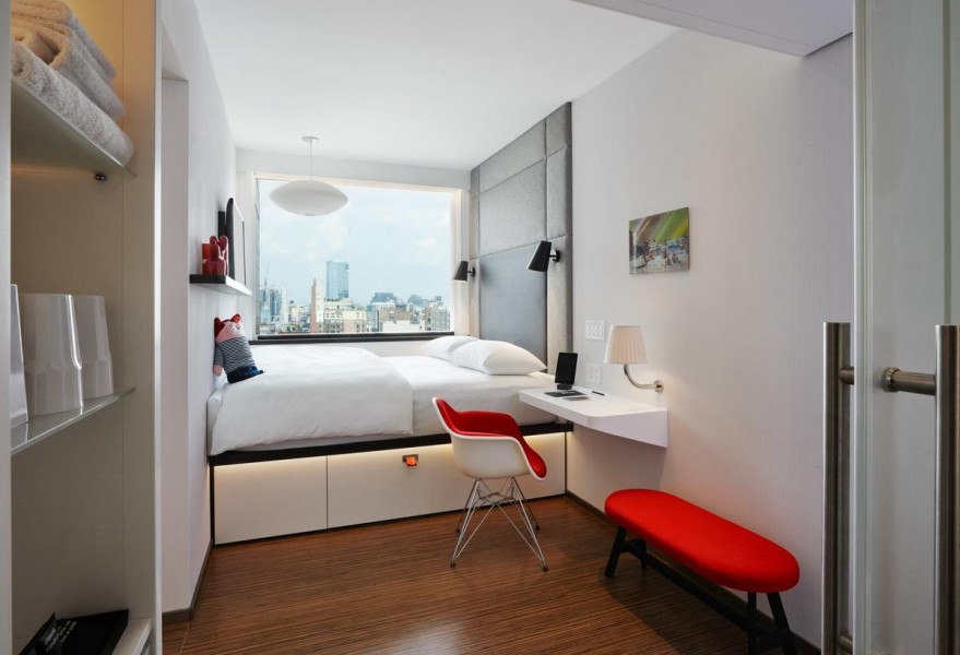 Innovative and modern hotel in the heart of Manhattan, 1 minute from Times Square. It prioritises experience and value: bright, cosy, clean rooms, all with wall-to-wall windows to immerse the guest in the bustle of NYC at a reasonable price. A panoramic rooftop bar also provides spectacular views.