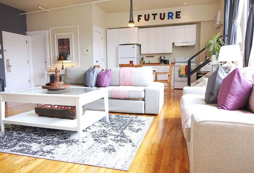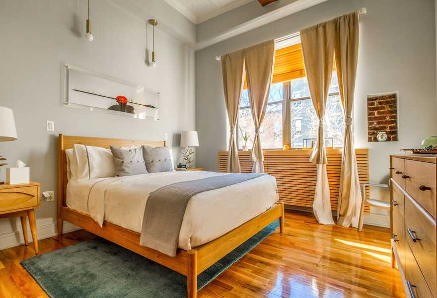 Fully furnished serviced apartments in the trendy neighbourhood of Greenpoint, Brooklyn. Airy and spacious studios and lofts with kitchens, workspaces, contemporary artworks, bohemian accents and stunning city views of Manhattan and Brooklyn. The ideal solution anyone planning a longer stay.