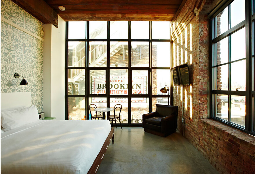 Fashionable hotel in an old industrial building offering spacious, well-equipped rooms. Brooklyn location, modern art on the walls and general décor makes this a hotel perfect for a modern, stylish New York experience. Restaurant and bar in the building complement this contemporary feel.