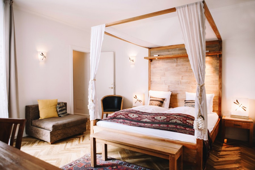“Balinese decoration and an organic restaurant, in the hip Vesterbro district. A fabulously stylish spot for couples and spa breaks. Beautiful white rooms and suites with pale woods, Persian rugs, teak four posters, and some with private balconies. Enjoy the luxurious roof top spa. ”