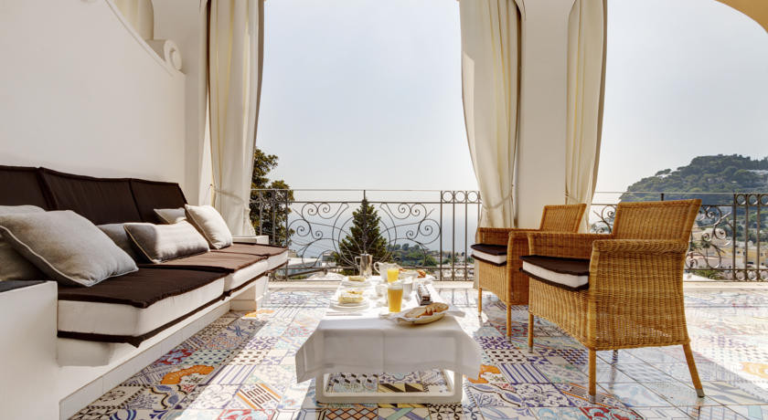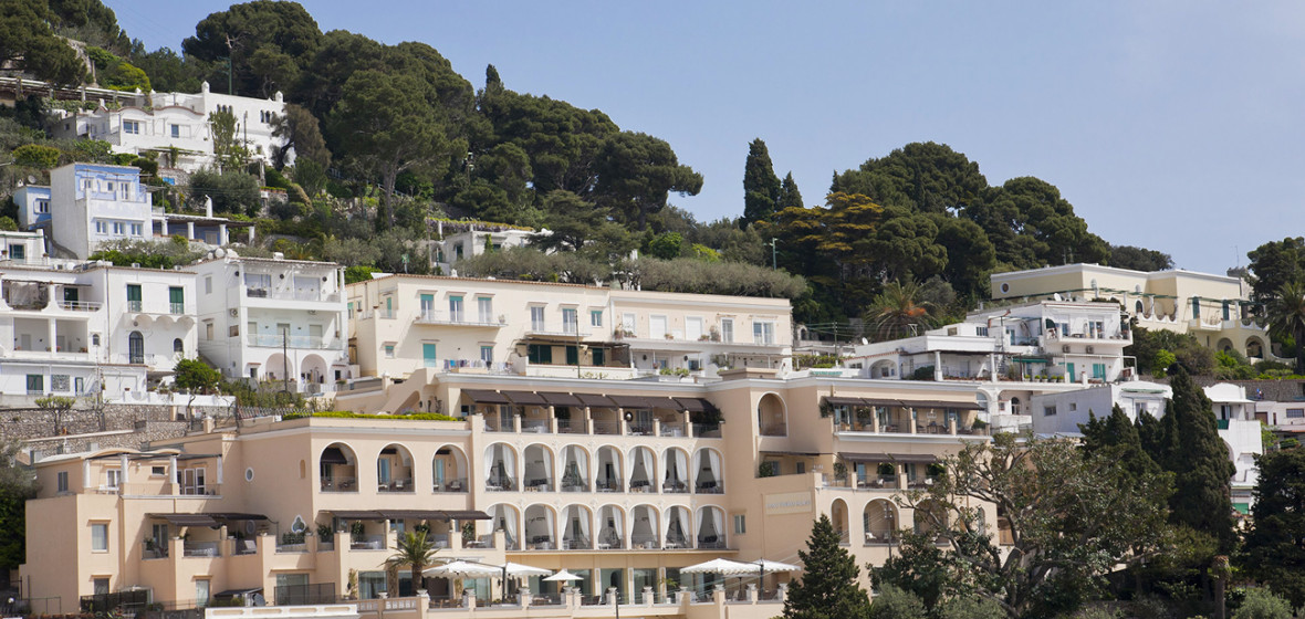 The latest addition to Capri’s hotel scene, the Tiberio Palace, is perfectly situated in the heart of Capri town. It is a gentle stroll away from the Piazzetta, along cobbled streets lined with elegant boutiques yet high up enough to offer wonderful, sweeping views of the blue Mediterranean. Inside, all is contemporary chic with a breezy, cool, sophisticated vibe and splashes of colour. There is a Taschen book store, a bar and excellent restaurant which encourage lingering. The Spa Tiberio by Sodashi extends over two floors with indoor and outdoor pools, sensorial showers and treatment rooms. Every comfort can be found in the 60 – rather simply furnished bedrooms, and stylish suites which offer the last word in luxury.