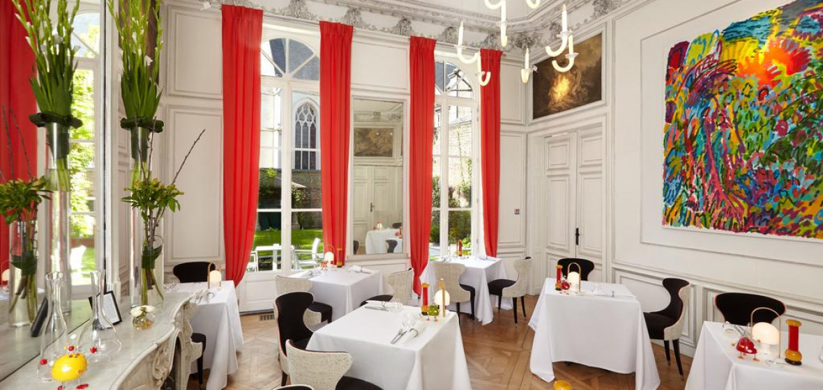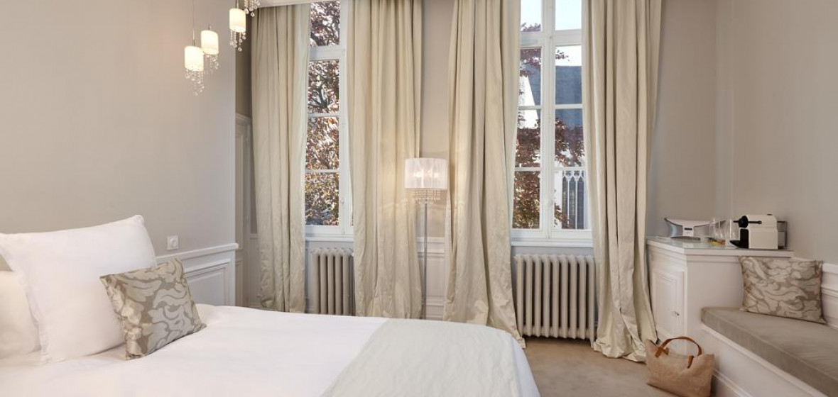 It’s so discreet, you’ll probably walk right past the entrance, yet the bustling Grand Place is less than 10 minutes’ away. Set quietly around a courtyard on the Rue Barre, the luminous pale-grey stone building, a former 18th-century merchant’s townhouse, has been turned into19 rooms and suites, most in the main building, some in an adjoining wing. All have an elegant, modern simplicity in bold monochrome shades with pops of glamour in glass-topped tables, velvet throws and large mirrors. Space is kept uncluttered with minimal decorative touches apart from a bold modern art print or sultry black-and-white photograph. Several rooms show off original beams.There are more original features in the light-filled, ground floor public areas with their high,plaster work ceilings and handsome double doors. Three separate but interconnecting rooms make up the dining areas, each with original wood panelling or painted panels of exotic birds and animals, and with doors opening to the secluded walled garden at the rear. Chef Thibaut Gamba offers Michelin-starred dining where the tasting menu could include grilled langoustines with celery mousse, and roasted cod with butternut squash and marigolds.Breakfast has a generous choice of breads, home-made preserves and cakes, plus meats, cheeses and smoked fish together with eggs cooked how you wish. If the weather’s warm, this is best enjoyed in the garden.