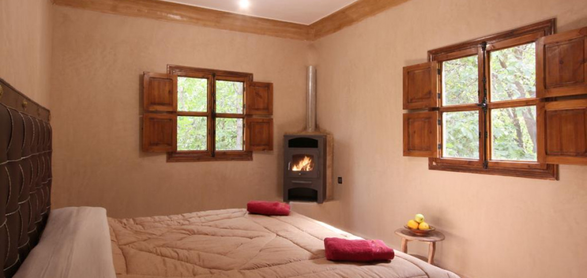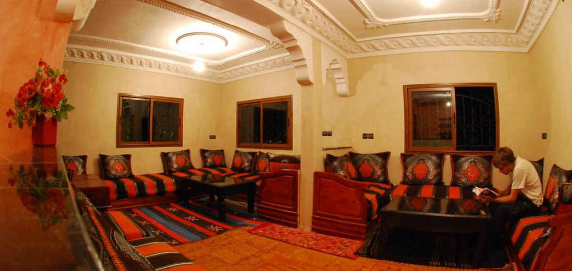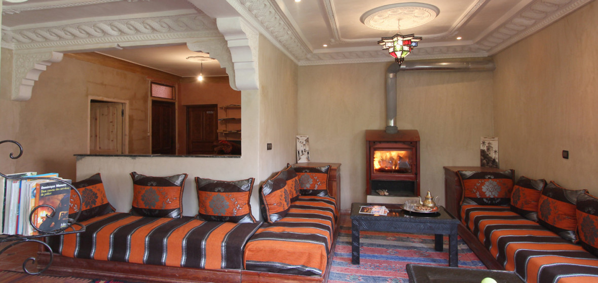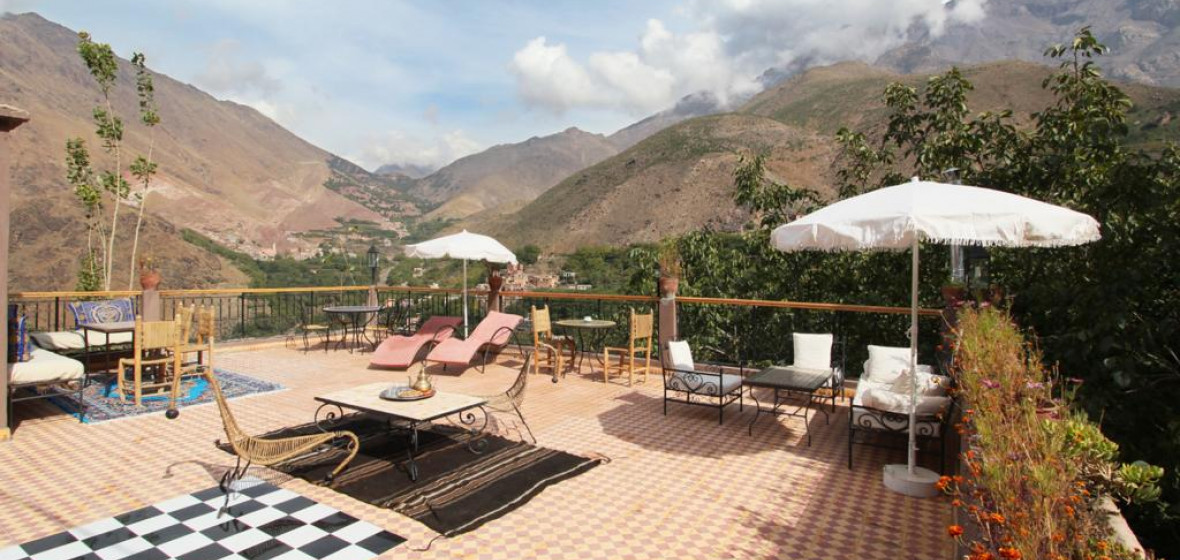 Only an hour’s drive south of Marrakech, Dar Adrar sits up at 1800m in a little Berber village, in the midst of the Toubkal National Park. This small guesthouse offers everything you need for a short adventure in the High Atlas and at a very affordable price. Don’t expect frills; accommodation is simple, clean and basic. There are 5 en-suite rooms, two of them with their own log stove and 3 further rooms two with private facilities. Hot water does not always arrive on demand but the tagine more than makes up for it! A mule takes your luggage the last 10 minute walk up from Imlil and you arrive to a modest building with a similar feel to an Alpine chalet. Breakfast is plentiful and all meals are served communally in the large Berber style main room beside a blazing wood fire. If you don’t fancy a walk by day then you can relax on the lovely roof terrace with panoramic views down to Imlil and the Ait Mizane Valley. The helpful young owner Mohammed Aztat speaks good English and French and is a qualified Atlas Mountain Guide. He will arrange guided walks of the area and any equipment can be rented from his shop in Imlil.