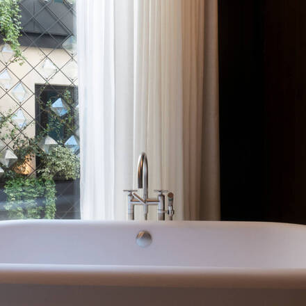 Our classic and deluxe rooms are the signature of the hotel. Designed by Jacques Garcia, famous interior designer, the rooms have this particular warm and delicate neogothic atmosphere. From the luxurious fabrics covering the walls to the precious antique furniture, the oriental style creates a feeling of intimacy combined with luxury. Our guests can also enjoy the comfort of our bathtubs laying on a precious black mosaic floor.