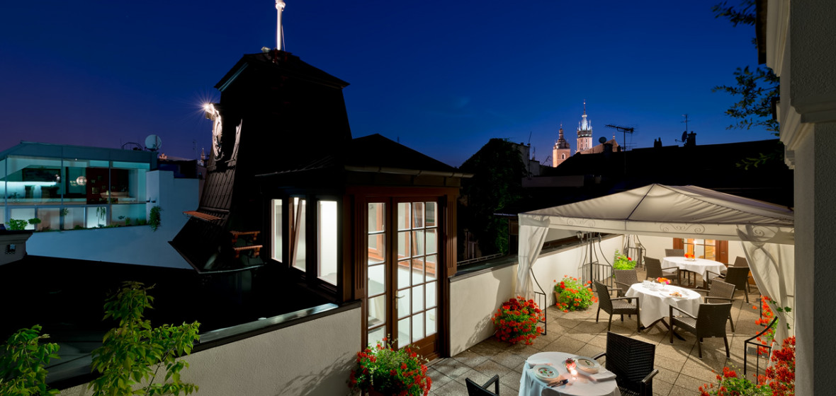 If you can find this boutique gem you won’t be disappointed. Located on a quiet alley in Old Town, it is only 300m from the Rynek. The unassuming façade belies the attention that has gone into the interior. Each room is individually decorated according to a range of themes from Renaissance to Chinese. The cosy library bar, complete with log fire and leather sofas, is perfect for winter evenings. In summer you can have your morning coffee on the top-floor terrace, overlooking the spires of St Mary’s church.