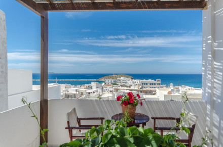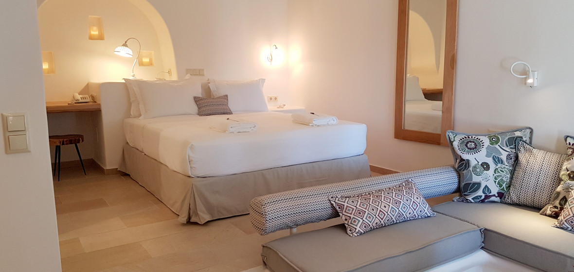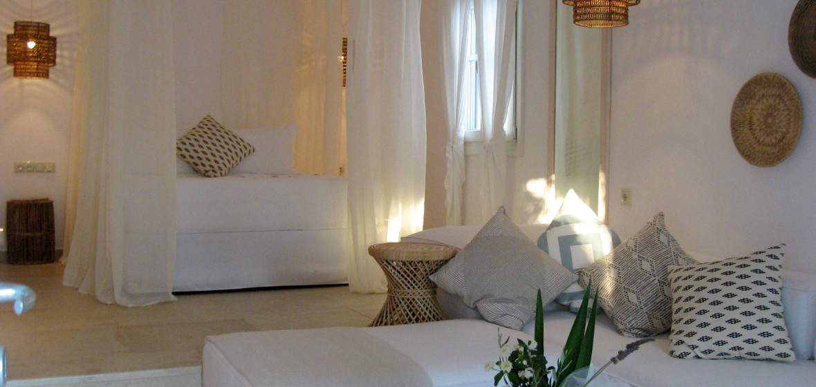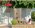 “Chic villas, studios and apartments in simple stylish whitewashed cottages. Typical Cycladic architecture, with lush grounds, outstanding views from terraces into the sea. Delicious local food served on the verandas. Villas have their own kitchenette making them ideal for families.”