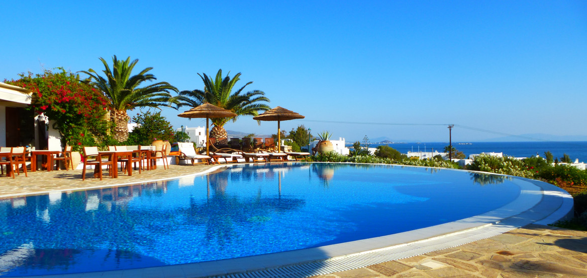 Combining hotel facilities, such as a bar, restaurant and pool, with self-contained, self-catering accommodation close to the beach, Kavos is an excellent choice for a family holiday yet is also very popular with couples and honeymooners. From outside, the villas, studios and apartments are typically Cycladic, with whitewashed walls and sea green woodwork, and are set in lush grounds splashed with red and purple flowers. Inside, they’re spacious and well laid-out, with mezzanine beds and well-equipped kitchenettes, without trying too hard for Greek island character. Total relaxation in idyllic surroundings, near the beach but not too near.