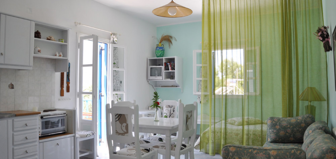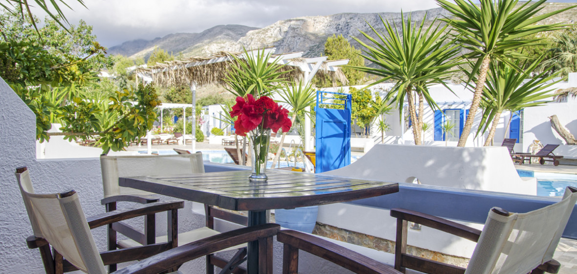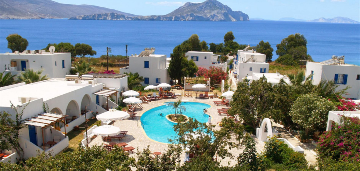 Simply one of the best spots in Greece. Nikki Gavalas (who combines Greek charm with New York savvy) queens it over her oasis-like collection of bungalows and apartments on a long, sandy bay. The water is shallow and calm, making it ideal for small children. One- and two-storey Cycladic cottages with blue woodwork and whitewashed walls surround a pool and flower-filled garden. The Lakki’s own taverna is open from dawn until late, serving typical dishes made from locally-sourced produce.