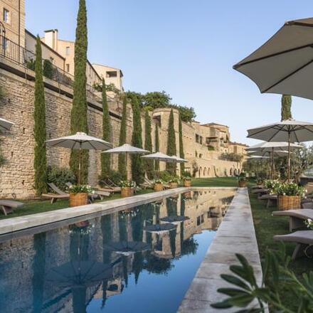 “Authentic stone-walled 19th century house, with wonderful views, secret gardens, swimming pool and breakfast terrace. The chic Provencal-style rooms are full of character and the highly acclaimed restaurant crafts wonderful food from local produce. An ideal spot for exploring.”